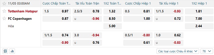 Tip kèo Châu Á full trận Tottenham vs Copenhagen