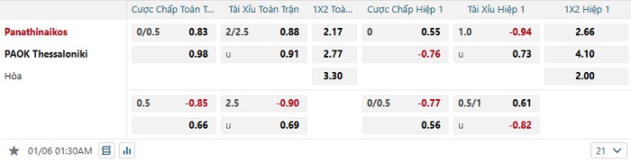 - Dự đoán tỷ số cả trận: Panathinaikos 1 – 1 PAOK