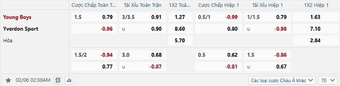 Tip kèo Châu Á full trận Young Boys vs Yverdon Sport