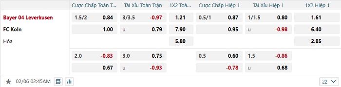 Tip kèo Châu Á hiệp 1 Bayer Leverkusen vs Koln