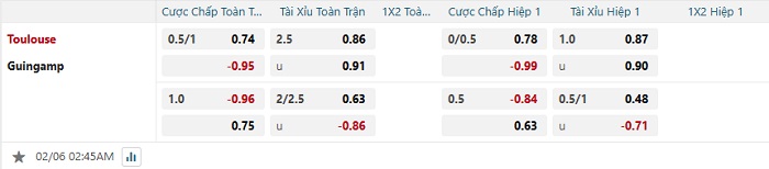 Tip kèo Châu Á hiệp 1 Toulouse vs Guingamp