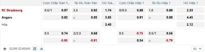 Tip kèo Châu Á full trận Strasbourg vs Angers