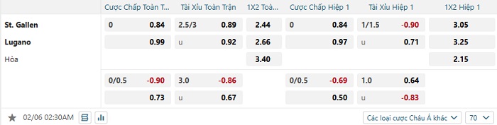 Tip kèo Châu Á full trận St. Gallen vs Lugano