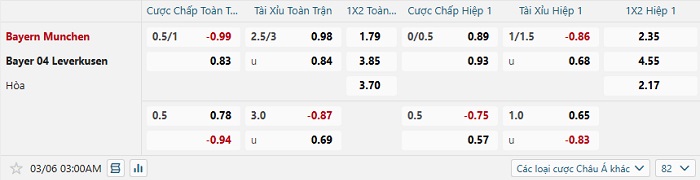 Tip kèo Châu Á full trận Bayern Munich vs Bayer Leverkusen