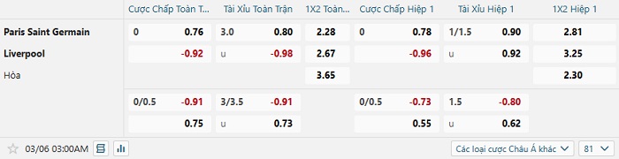 Tip kèo Châu Á full trận PSG vs Liverpool