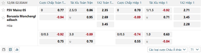 Tip kèo Châu Á full trận Mainz vs Monchengladbach