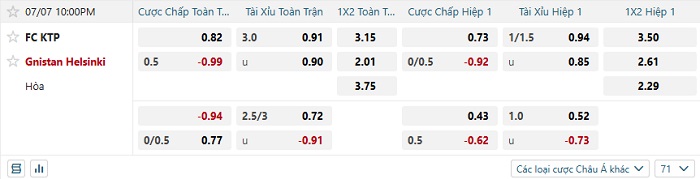 Tip kèo Châu Á hiệp 1 FC KTP vs Gnistan Helsinski