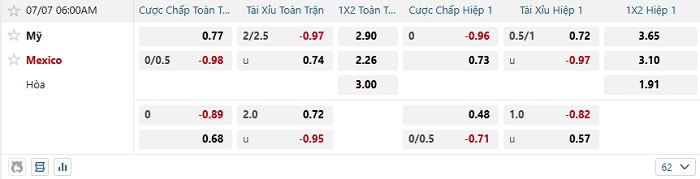 Tip kèo Châu Á hiệp 1 Mỹ vs Mexico