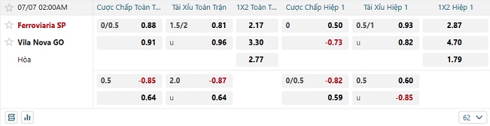 Tip kèo tỷ số Ferroviaria vs Vila Nova