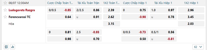 Tip kèo Châu Á full trận Ludogorets vs Ferencvaros