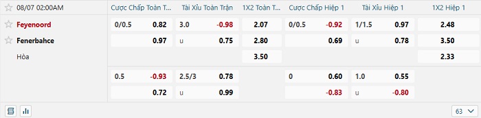 Tip kèo Châu Á full trận Feyenoord vs Fenerbahce