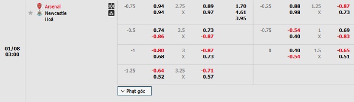 Tip kèo Châu Á full trận Arsenal vs Newcastle