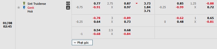 Tip kèo Châu Á full trận Sint Truidense vs Genk