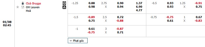 Tip kèo Châu Á full trận Club Brugge vs Leuven