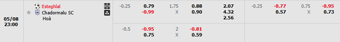 Nhận định trận đấu Esteghlal vs Chadormalu: Đều đang có phong độ không tốt trong thời gian qua, trận đấu hôm nay giữa hai đội có khả năng hòa nhau rất cao. Thế nên ở mức chấp châu Á +1/4, đội khách chính là lựa chọn an toàn nhất. Ngoài ra thì khả năng tấn công không tốt của cả hai sẽ khiến trận đấu này khan hiếm bàn thắng.