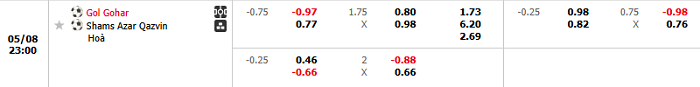 - Dự đoán tỷ số hiệp 1: Gol Gohar 1 – 0 Shams Azar