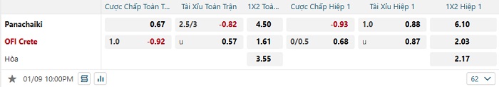 Tip kèo Châu Á full trận Panachaiki vs OFI Crete