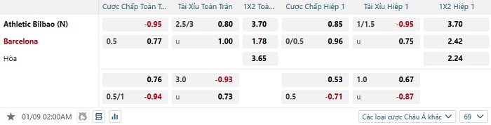 Tip kèo Châu Á hiệp 1 Bilbao vs Barcelona