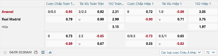 Tip kèo Châu Á full trận Arsenal vs Real Madrid