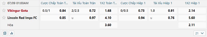 Tip kèo Châu Á full trận Vikingur Gota vs Lincoln Red Imps