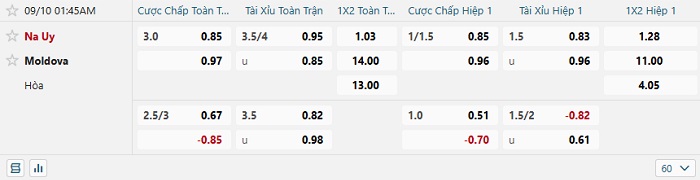 Tip kèo Châu Á hiệp 1 Na Uy vs Moldova