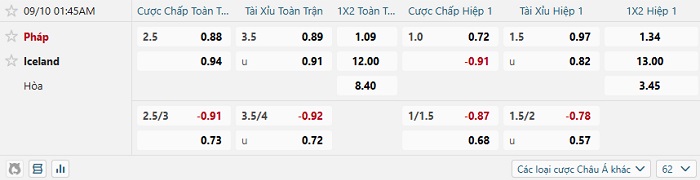 Tip kèo Châu Á hiệp 1 Pháp vs Iceland