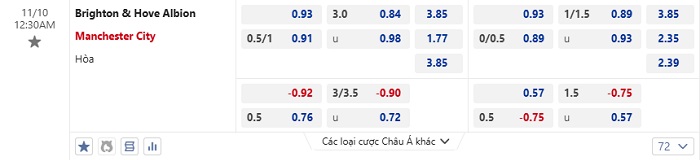 Tip kèo Châu Á hiệp 1 Brighton vs Man City