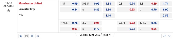 Tip kèo Châu Á hiệp 1 Man United vs Leicester