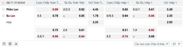 Tip kèo Châu Á hiệp 1 Phần Lan vs Ba Lan
