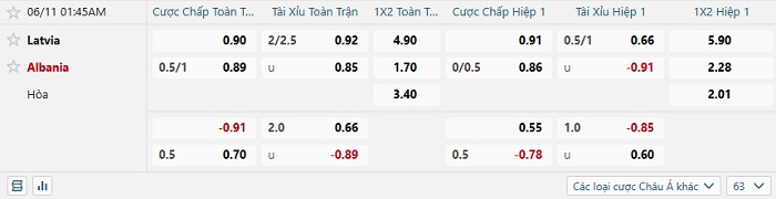 Tip kèo Châu Á hiệp 1 Latvia vs Albania