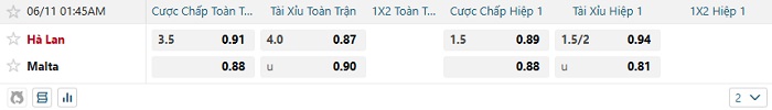 Tip kèo Châu Á full trận Hà Lan vs Malta