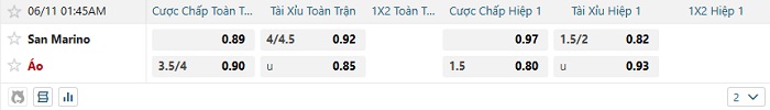 Tip kèo Châu Á hiệp 1 San Marino vs Áo