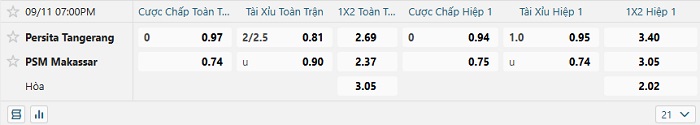 Tip kèo Châu Á full trận Perista Tangerang vs PSM Makassar
