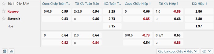 Tip kèo Châu Á hiệp 1 Kosovo vs Slovenia