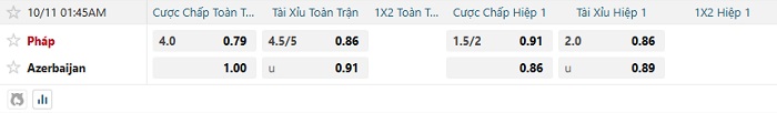 Tip kèo Châu Á hiệp 1 Pháp vs Azerbaijan