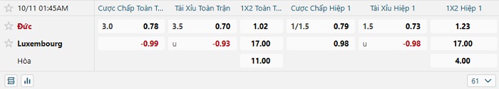Tip kèo Châu Á hiệp 1 Đức vs Luxembourg