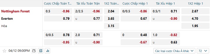 Tip kèo Châu Á hiệp 1 Nottingham vs Everton