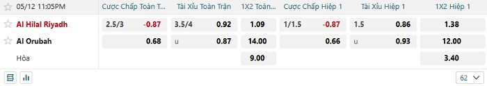 • Dự đoán tỷ số hiệp 1: Al Hilal 2 – 0 Al Orubah