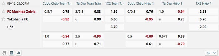 Tip kèo Châu Á hiệp 1 Machida vs Yokohama