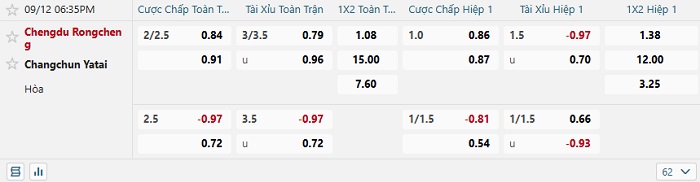 Tip kèo Châu Á hiệp 1 Chengdu Rongcheng vs Changchun Yatai