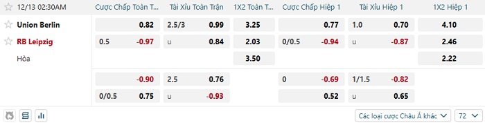 Tip kèo Châu Á hiệp 1 Union Berlin vs Leipzig