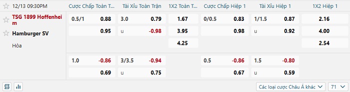 Tip kèo Châu Á full trận Hoffenheim vs Hamburger