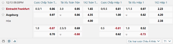 Tip kèo Châu Á full trận Frankfurt vs Augsburg