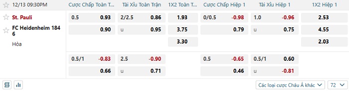 Tip kèo Châu Á hiệp 1 St. Pauli vs Heidenheim