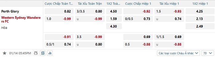 Tip kèo Châu Á hiệp 1 Perth Glory vs Western Sydney