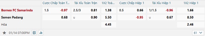 - Dự đoán tỷ số hiệp 1: Borneo FC 1 – 0 Samen Padang