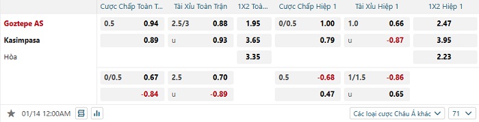 - Tip kèo cá cược Châu Á hiệp 1: Chọn Goztepe -1/4