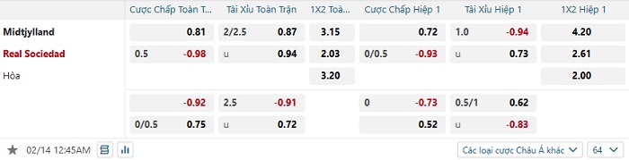 Tip kèo Châu Á full trận Midtjylland vs Real Sociedad