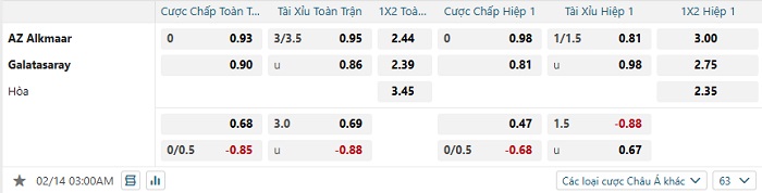 Tip kèo Châu Á hiệp 1 AZ Alkmaar vs Galatasaray