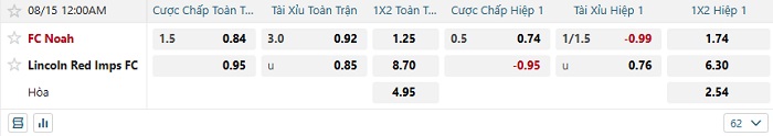 Tip kèo Châu Á full trận FC Noah vs Lincoln Red Imps